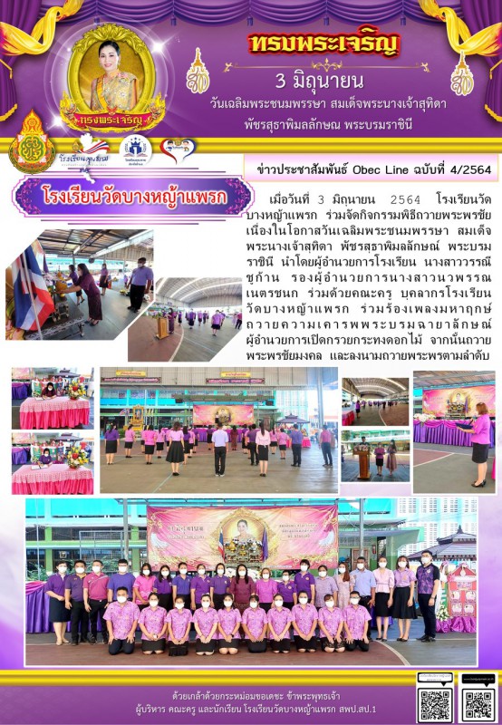 กิจกรรมพิธีถวายพระพรชัยเนื่องในโอกาสวันเฉลิมพระชนมพรรษา สมเด็จพระนางเจ้าสุทิดา พัชรสุธาพิมลลักษณ์ พระบรมราชินี