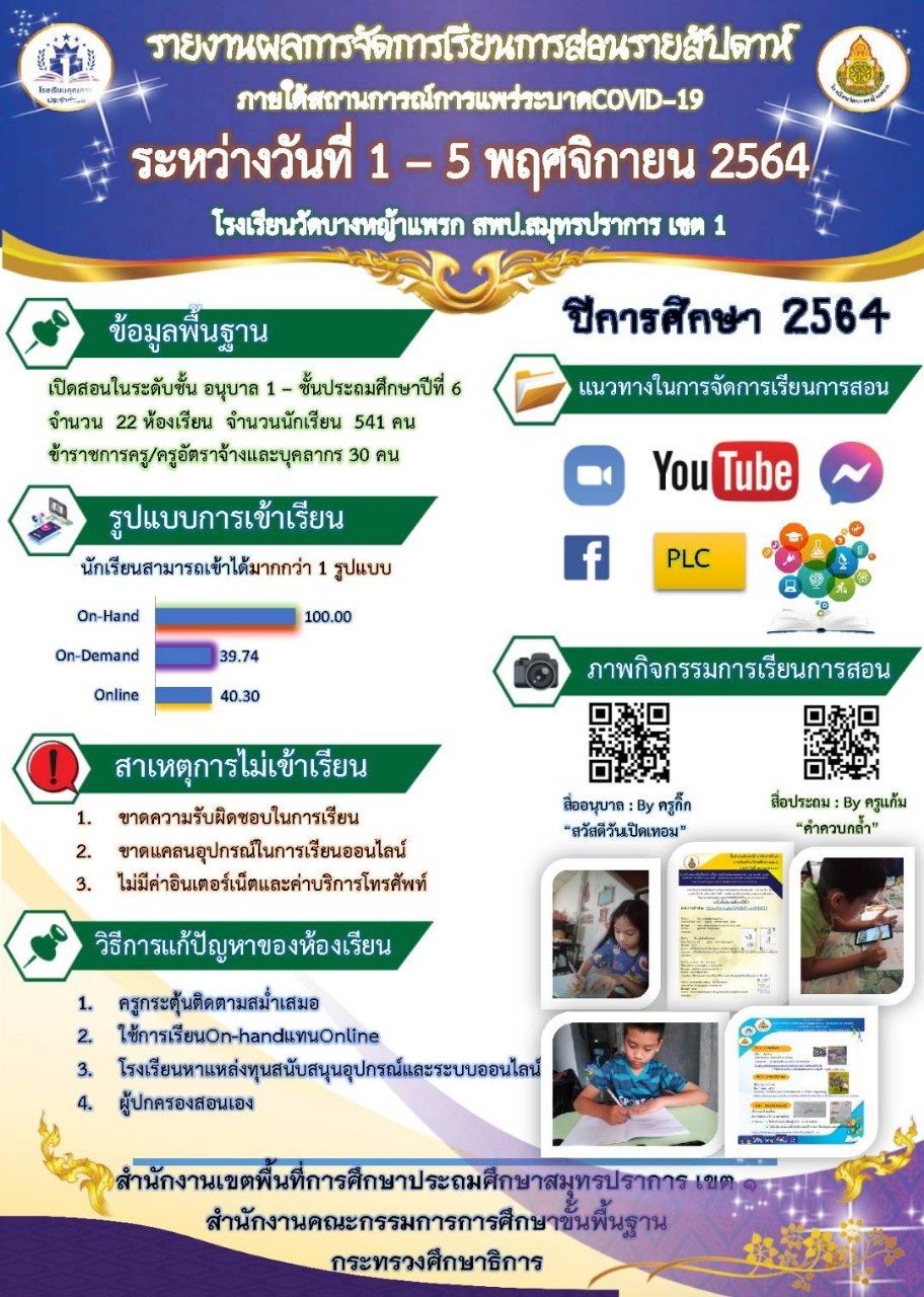 รายงานการจัดการเรียนการสอนออนไลน์ สัปดาห์ที่ 1