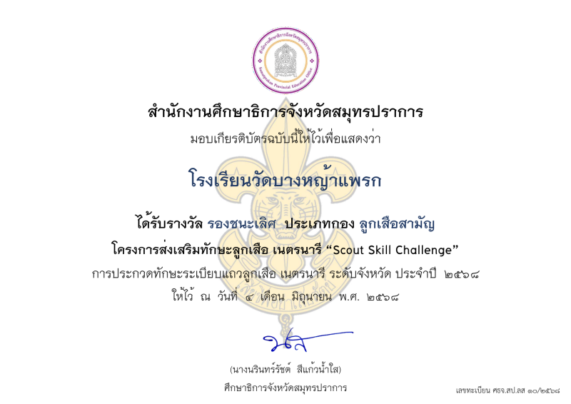 ประกวดทักษะระเบียบแถวลูกเสือเนตรนารี ระดับจังหวัด ประจำปี 2568 รางวัลรองชนะเลิศ อันดับ 2 ประเภทกงอเนตรนารีสามัญ