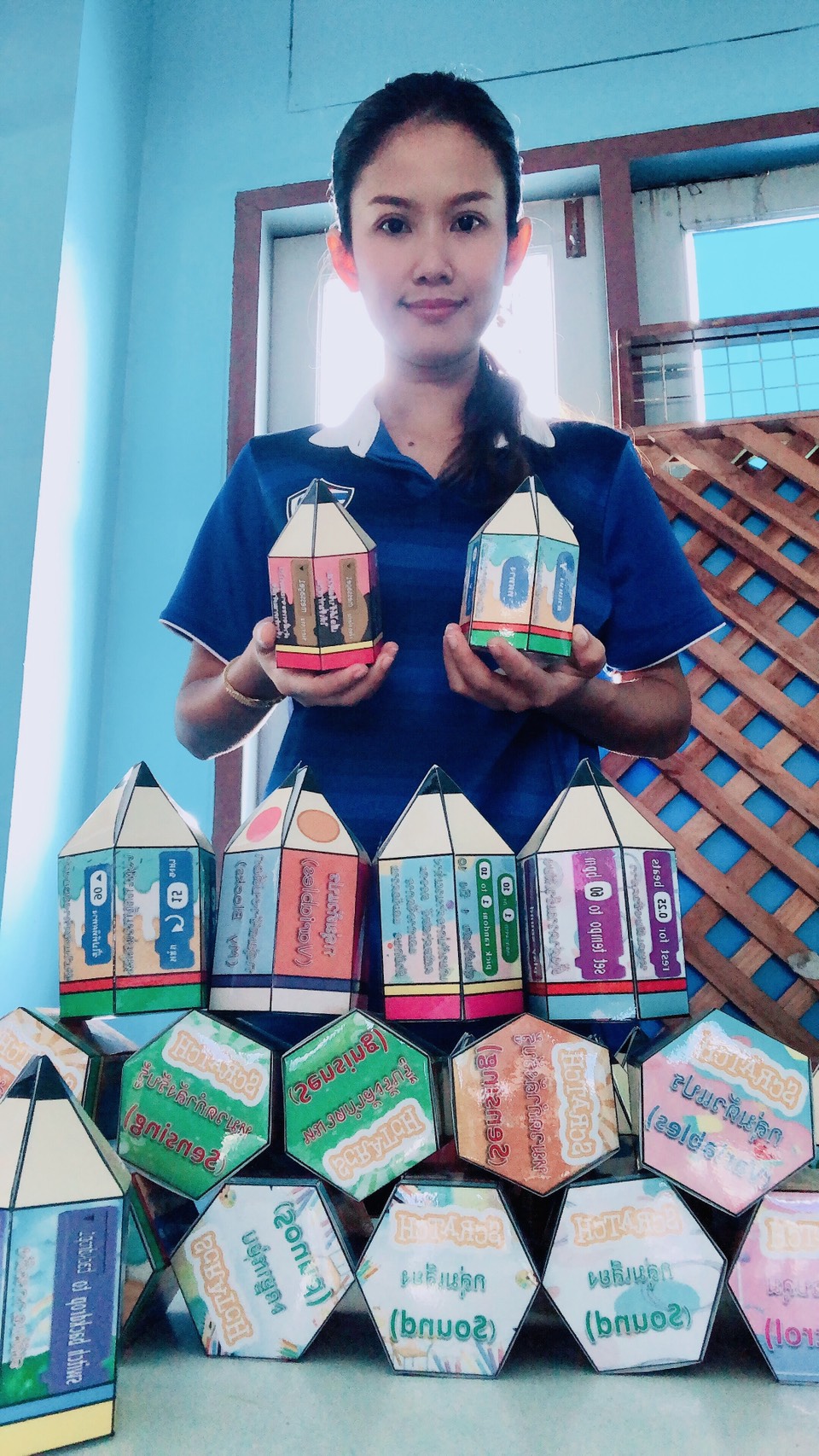 เป็นสื่อเพื่อการเรียนรู้การเขียนโปรแกรม ให้นักเรียนรู้จักบล็อกคําสั่งต่างๆ ในโปรแกรม Scratch ซึ่งแบ่งบล็อกคําสั่งเป็นหมวดต่างๆ ทั้วหมด 8 หมวด มีสีต่างกัน ตามลักษณะหน้าที่ของแต่ละหมวด |
